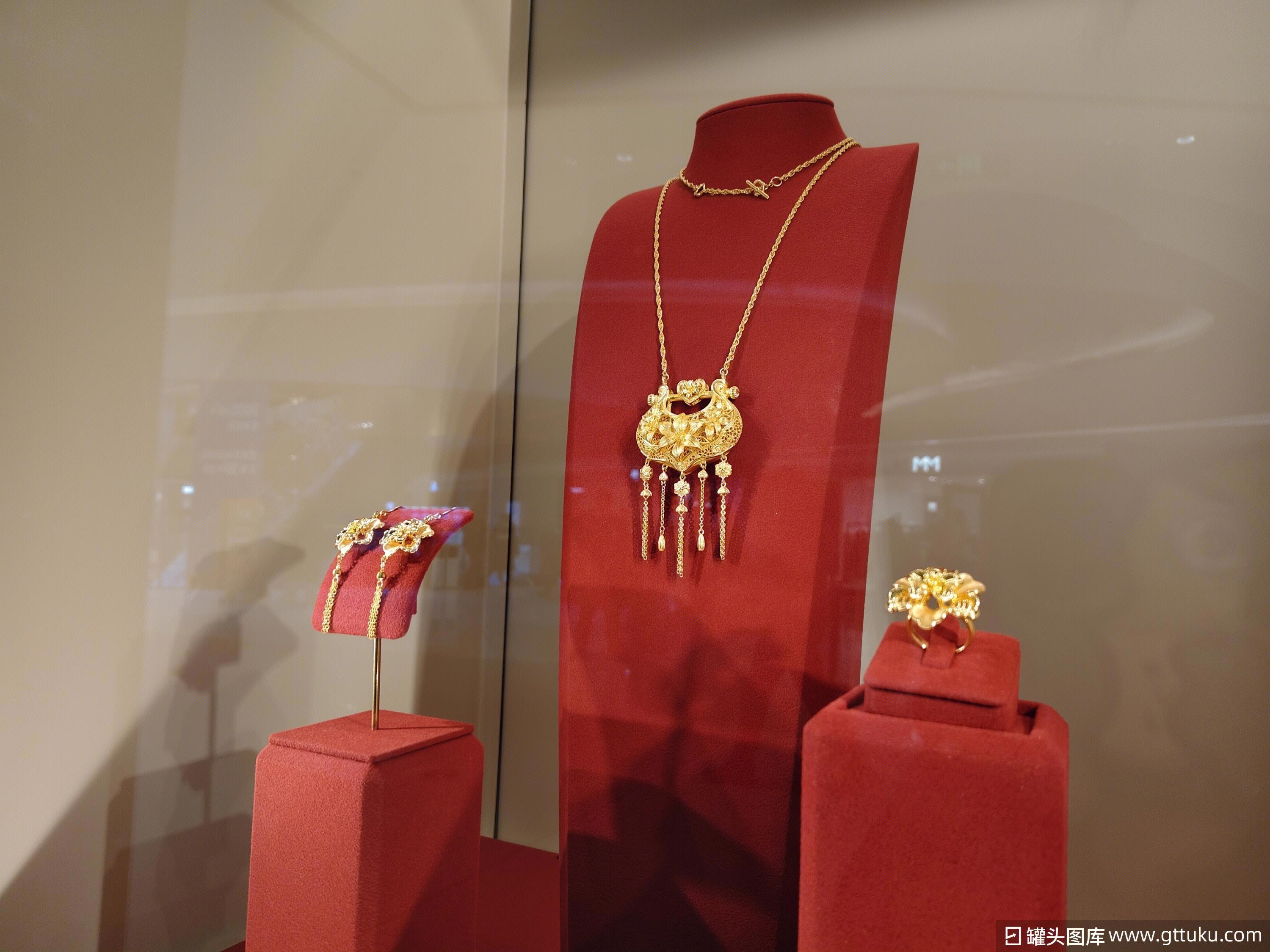 罐头图库 » 老庙黄金 金店 金首饰 金饰展柜 黄金套饰