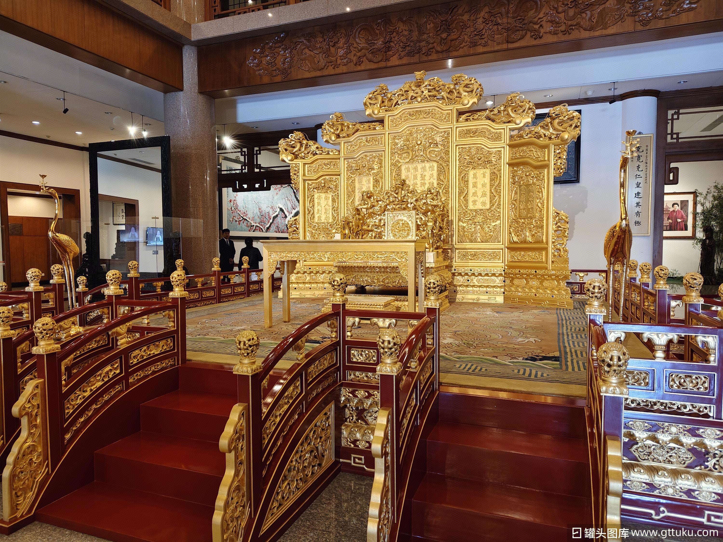 罐头图库 » 紫檀宫 中国紫檀博物馆 金漆雕龙宝座屏风